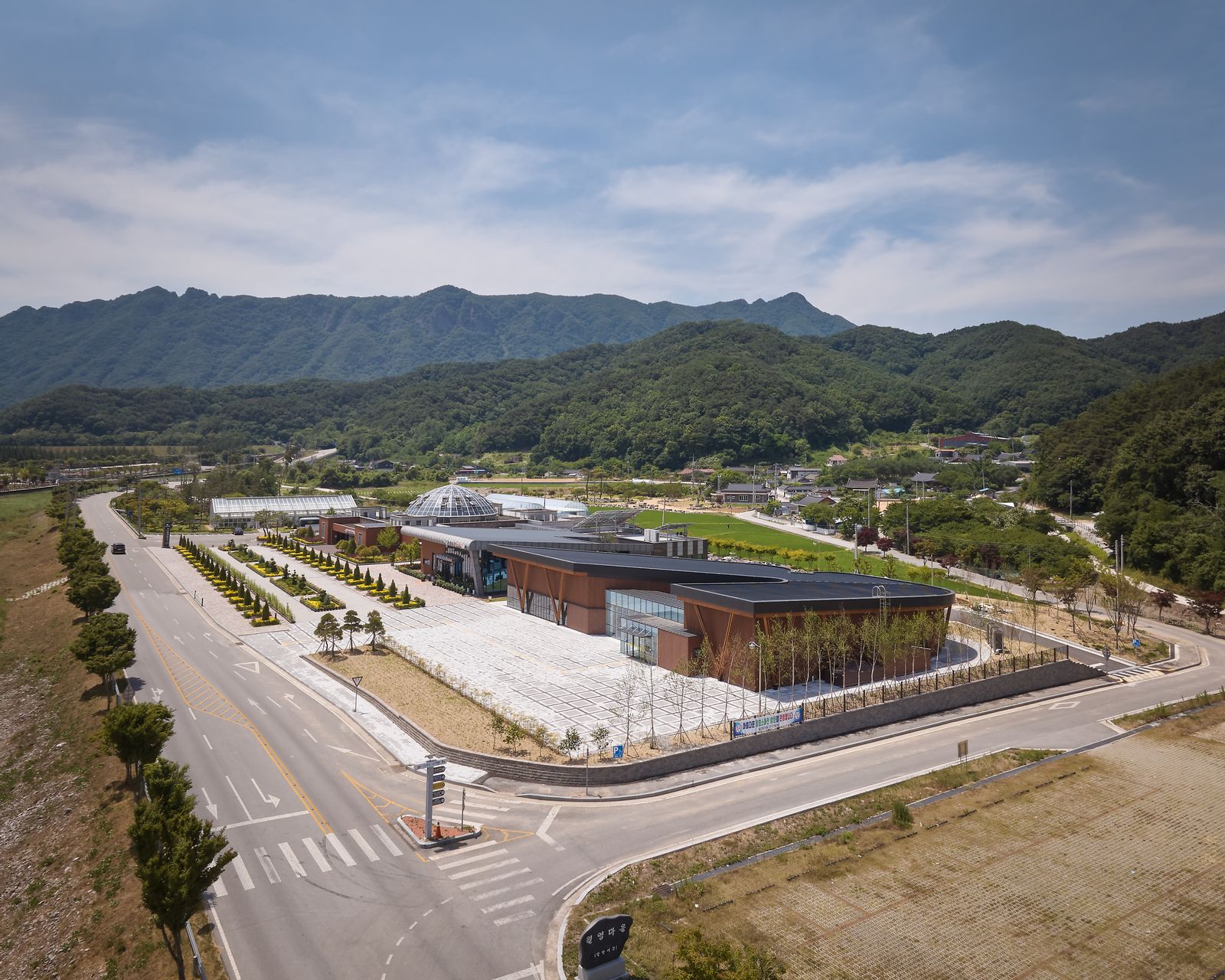 자연환경을 바라볼 수 있는 곳은 유리 커튼월로 마감했습니다. 1층의 로비, 2층의 라운지, 4~6층 식당 및 업무공간에서는 이 통창 너머로 경치를 구경할 수 있습니다.