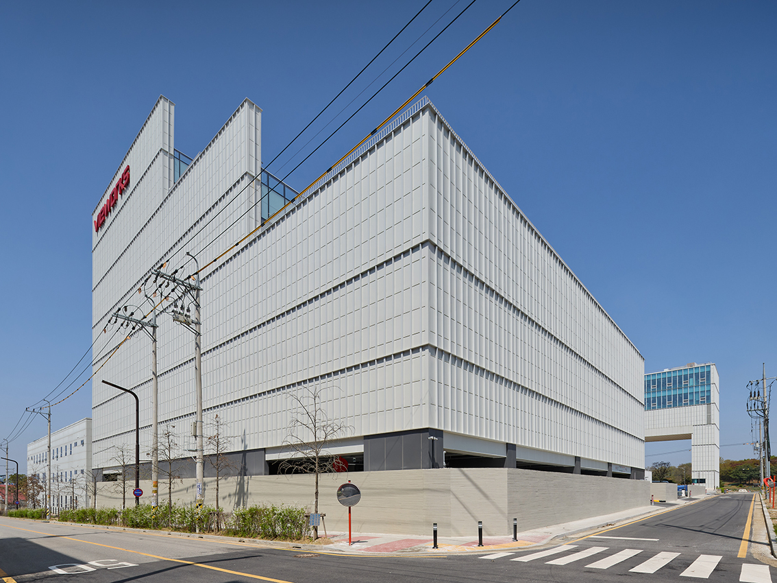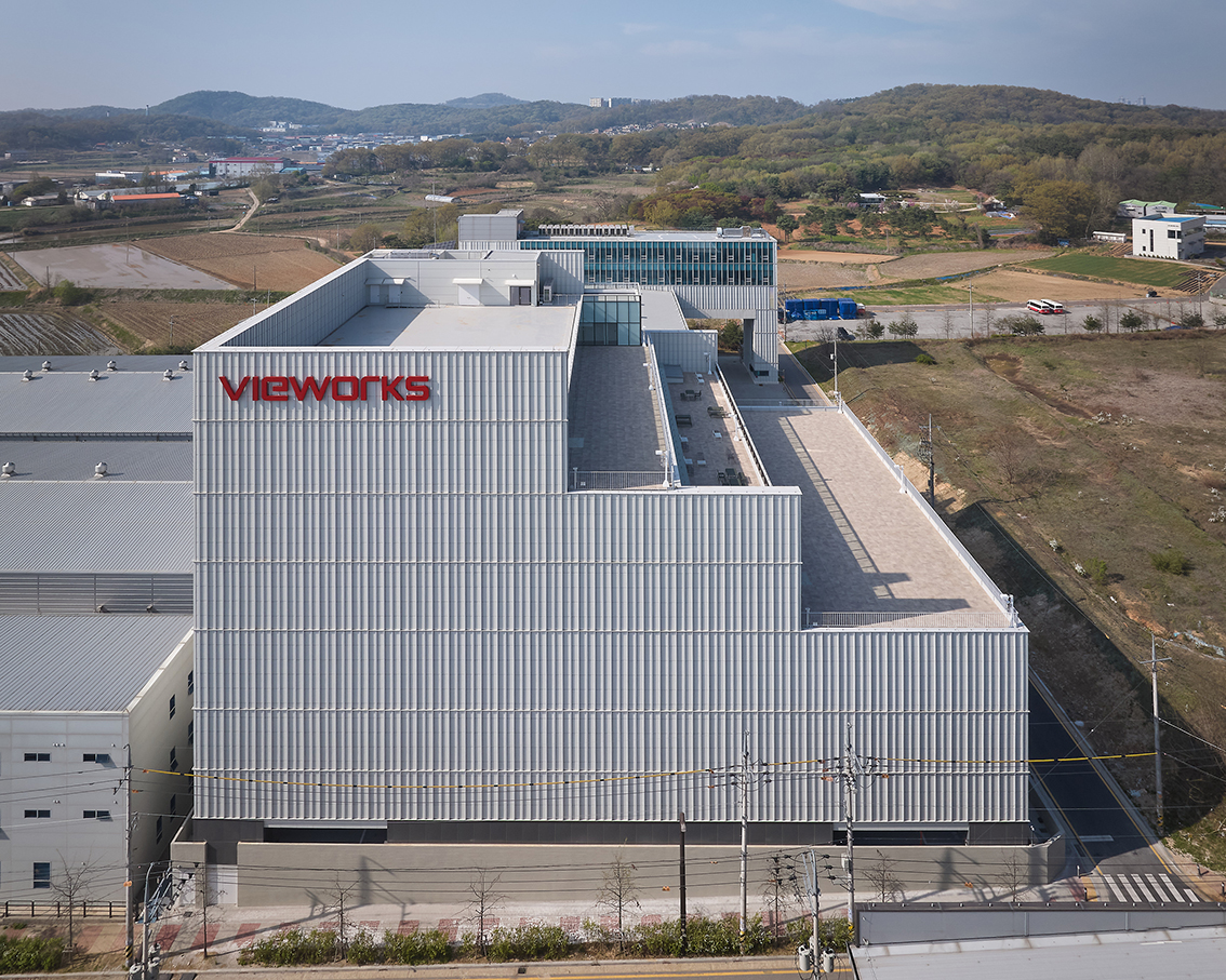 뷰웍스 화성 사업장은 생산공간, 휴게공간, 업무공간이 복합되어 있습니다. 1, 2단계에 걸친 증축으로 기업의 성장을 지원하고, 교외 자연을 활용해 직원의 회복 탄력성을 끌어올리고자 했습니다.