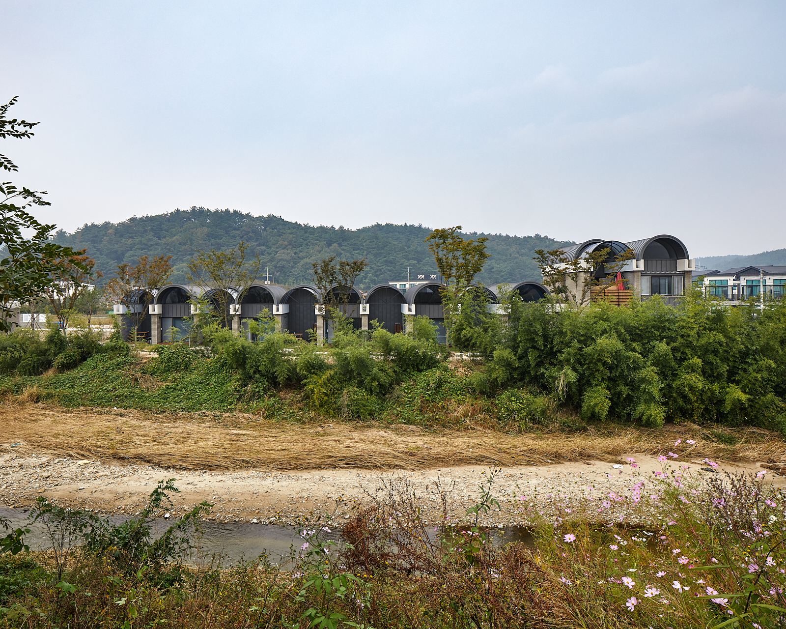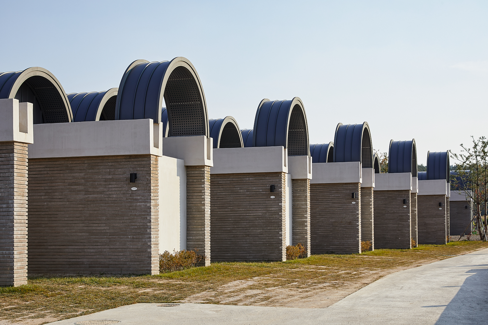 곡면의 볼트 지붕은 덮는 방식에 따라 실내, 반(半)야외, 야외공간을 만들어 작은 숙소에서도 다양한 공간감을 선사합니다.
