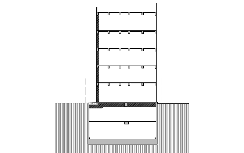 이 사업은 처음부터 의료시설로 임대할 것을 염두에 두고 진행되었습니다. 병원은 다수의 방문객이 오가는 곳인 만큼, 주차공간 확보는 중요한 이슈였습니다. 하지만 지상층의 기둥이 지하주차장으로 그대로 내려오면 주차장을 만드는 것이 불가능했습니다. 지상 6개층의 기둥의 위치를 지하층에서는 이동시켜서 주차장을 만들 수 있도록 구조 문제를 해결했습니다.