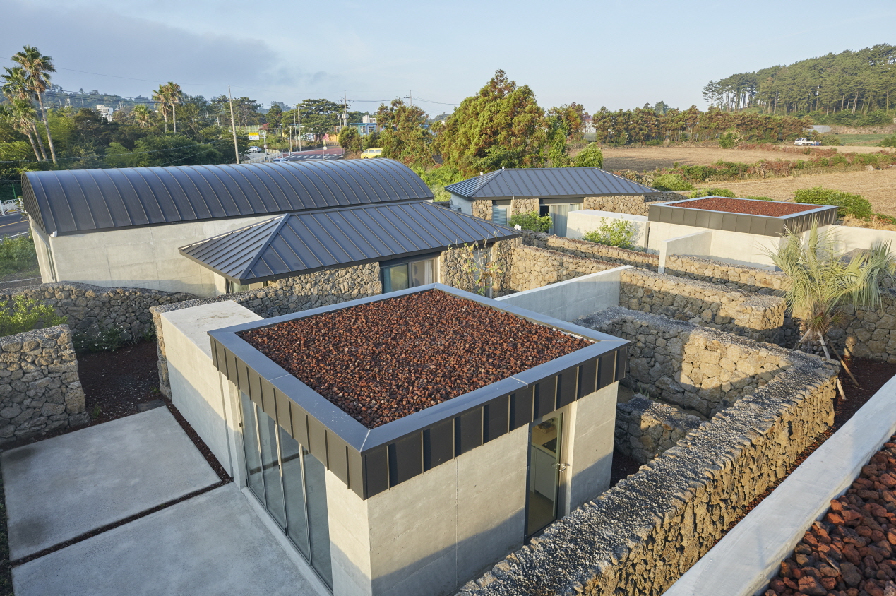 “작은 스케일의 지붕과 제주석 담장(울담)에 의한 건축의 짜임이 강력하다. 담장을 따라 걷다 보면 자연스레 첫 번째 건축물에 들어서게 된다. 한길에서 올레를 따라 올레목을 거쳐 현관에 이르는 일련의 시퀀스가 흡사 길 건너의 하가리 마을과 유사하다.”